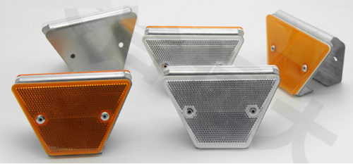 Lan can phản quang dạng hình thang tùy vào kết cấu, các điểm đánh dấu đường viền có thể được gắn vào lan can dầm tôn, lan can bê tông, tường bên hầm,lan can cáp